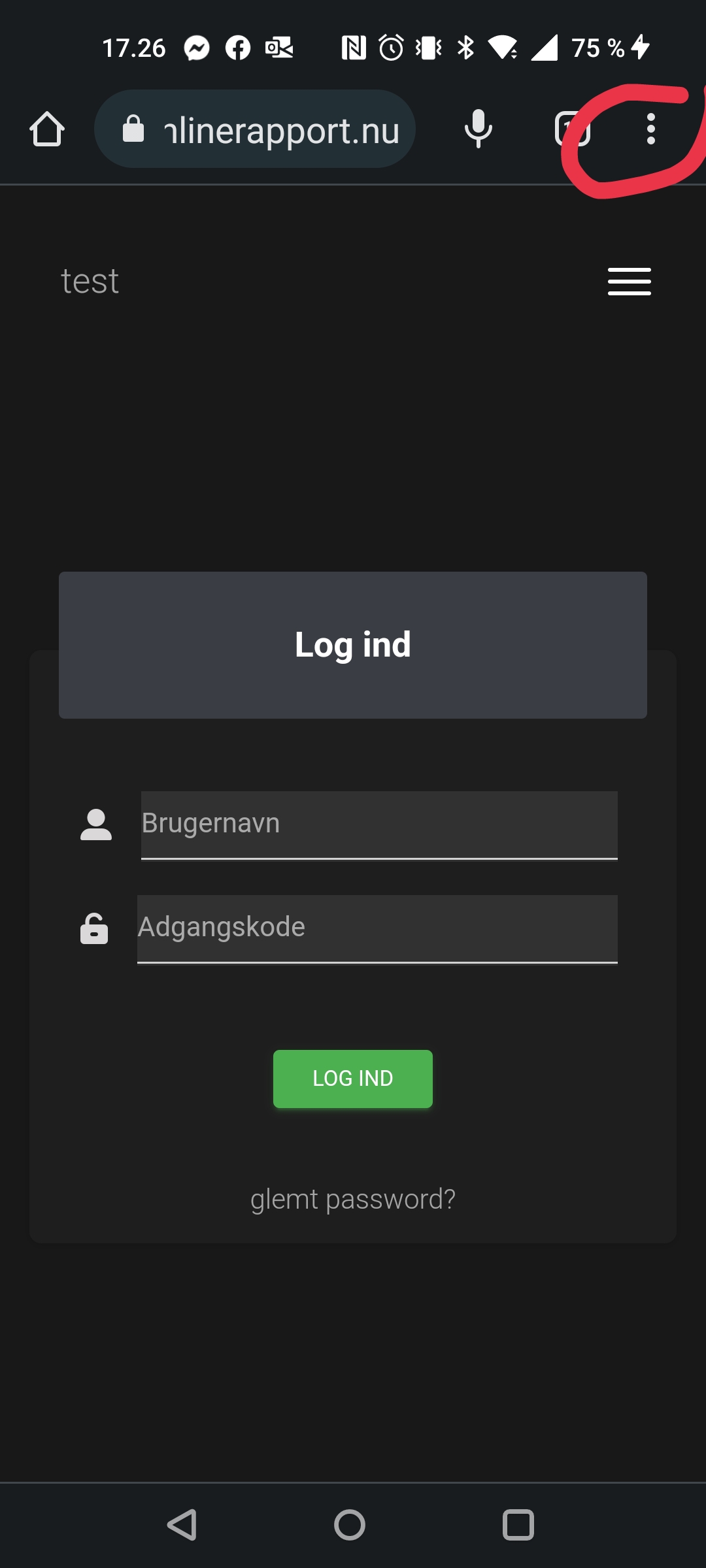 5. Når du kan se forsiden må du installere App'en igen. Hvis du ikke ønsker at benytte App'en kan du blot fortsætte med at bruge Chrome. Ønsker du at benytte App'en er det vigtigt at du kun installerer appen fra forsiden som vist her: